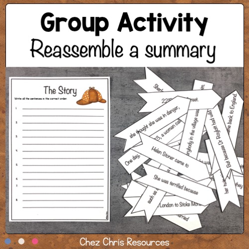 Une fois la partie lecture et analyse du texte terminée, vous pourrez poursuivre la séquence avec une activité de groupe que les élèves aiment beaucoup. 8 phrases sont séparées en 26 parties. Chaque groupe d’élèves reçoit une ou deux phrases à reconstituer. Il faudra ensuite mettre les phrases dans le bon ordre pour obtenir le résumé du début de l’intrigue. Ils pourront ensuite recopier ce résumé dans leur cahier ou sur la feuille fournie avec la ressource.