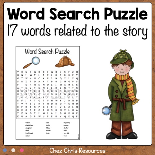 L’activité de mots mêlés sera parfaite pour vos fast finishers. C’est aussi un bon moyen de finir la séquence sur une note plus ludique. 17 mots, liés à l’intrigue, sont cachés dans la grille (horizontalement, verticalement, en diagonale, à l’endroit et à l’envers).